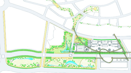 台湾の首都台北の東に位置する新幹線終着駅南港周辺の一連の再開発における公園の計画です。中心になる公園は、既存の市街地住宅地と今回再開発で改造する中間に位置し、今後の開発の重要な都市のかなめとして位置づけられます。計画地の一期計画は、池と芝生広場。二期計画は、池と一体化した建築を計画します。