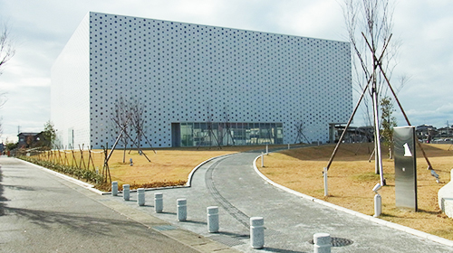 計画地の主要樹木として松類を高木植栽とし、それ以外はなだらかな芝生の地形を計画しました。周辺沿岸部においては、アカマツ、クロマツの順で潜在植生樹種となっています。 文化的には、兼六園をはじめとする城下町における松の原風景と、金沢の茶の湯文化を図書館の植栽計画に結び付けました。茶の湯が釜で沸き立つ音が、松の梢を渡る風の音と類似していることを 「松涛」といいます。読みながら考える図書館の空間は瞑想空間にもつながります。その点で図書館を茶室と見立て、周囲の植栽計画を「松涛」瞑想空間というコンセプトとしました。 松に囲われた茶の湯における空間は、図書館における読書空間と、瞑想空間と言う意味で同一の接点を見出しました。